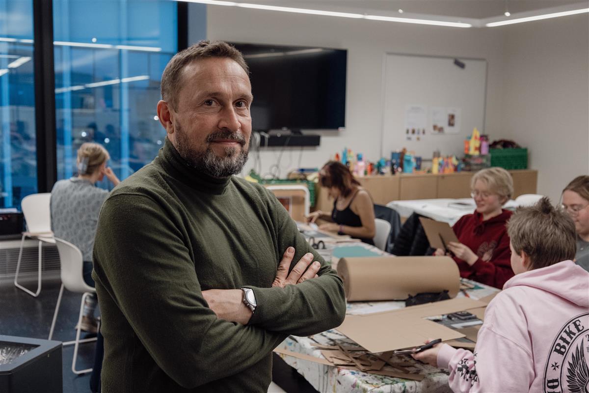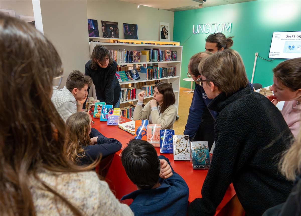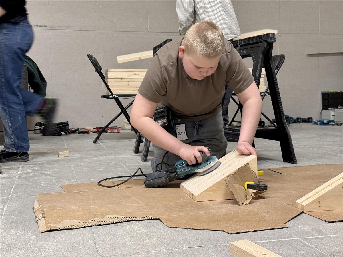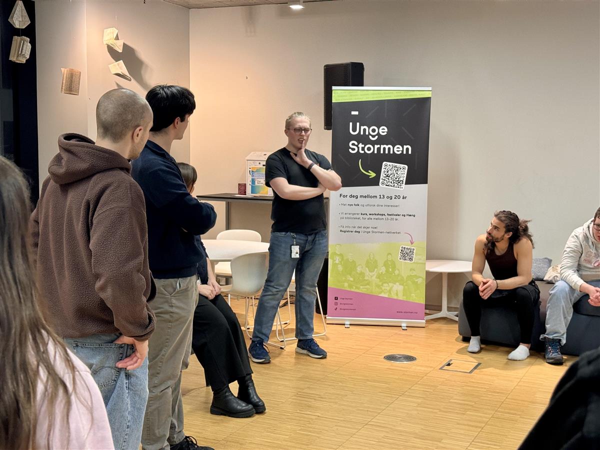 Ny ungdomsavdeling åpner 12. marsDu har kanskje lagt merke til at noe skjer med ungdomsavdelingen i Stormen bibliotek? Vi er nå i siste fase av et medvirkningsprosjekt mellom Stormen bibliotek, ungdommene i Unge Stormen, samt arkitekt Sami Rintala og arkitektstudenter fra NTNU. Helt siden Stormen bibliotek sto ferdig for ti år siden har Unge Stormen, et aktivt miljø med ungdommer,vært viktige aktører som har laget aktiviteter og arrangementer for annen ungdom i biblioteket. Målgruppener ungdom mellom 13 og 20 år og all aktivitet er gratis. De holder først og fremst til i biblioteketsungdomsavdeling som er et eget rom i 2. etasje med ungdomslitteratur, og områder hvor ungdommenekan sitte og jobbe eller «henge». Ungdommene har i lengre tid ytret ønske om at dette rommet burde være mer «deres» - tilpasset dem ogderes behov, og at det burde være mer synlig for alle at dette er et rom for ungdom og ungdomsaktiviteter.De ønsker kunst på veggene som gjenspeiler deres smak og preferanser, og en utforming som er tilpassetderes behov – et sceneområde, kulere og mer komfortable hengeområder, møbler som er gode å sitte inår en skal lese bok, kanskje steder en kan «gjemme seg» litt bort, mulighet for gaming og så videre.I 2024 og 2025 har er det gjennomført workshoper med ungdommer, arkitekt Sami Rintala og kunstner StianHansen hvor de i samarbeid har laget tegninger og modeller med forslag til hvordan en nyungdomsavdeling kan se ut. Arkitekt Sami Rintala holder kurs for ungdommerHelmer Nilsen(18) formidler tanker og ønsker til arkitektstudentene. Stormen bibliotek 15. februar 2026 ankom 15 studenter fra studiet “Design in context” fra Institutt for arkitektur og teknologi ved NTNU i Trondheim. De møtte ungdommer fra Unge Stormen, som la frem arbeid fra sine workshopen og fortalte om hvordan de bruker- og ønsker å bruke arealet.Arkitektstudentene studerer modellere ungdommene har laget. Stormen bibliotek Siv og Tommy Pedersen(16) forteller hvordan ungdommene bruker biblioteket i dag, og hvilke behov de har. Stormen bibliotek En gammel hylle blir ombygd til sitteplass.Byggmakker Gunvald Johansen stiller lokale til disposisjon, som brukes som verksted. Studentene har stort fokus på gjenbruk, og de gamle hyllene blir kombinert med treverk for å skape nye konstruksjoner. Ungdom Joakim Vinje Mentzoni(14) er i gang med pussing i verkstedet hos Byggmakker.Joakim Vinje Mentzoni deltar i verkstedet.De har to uker på å bygge den nye ungdomsavdelingen, som har offisiell åpning 12. mars kl.18.00.Her kan du lese en artikkel om prosjektet i Bodø NuProsjektet er finansiert med midler fra KORO, Kunst i Offentlige ROm. Publisert 24.02.2026 11.54 Sist endret 24.02.2026 12.31